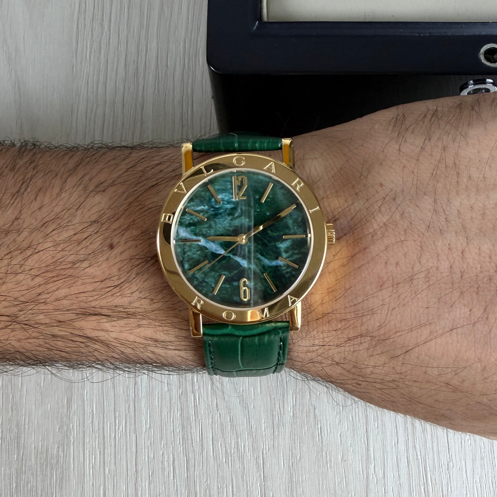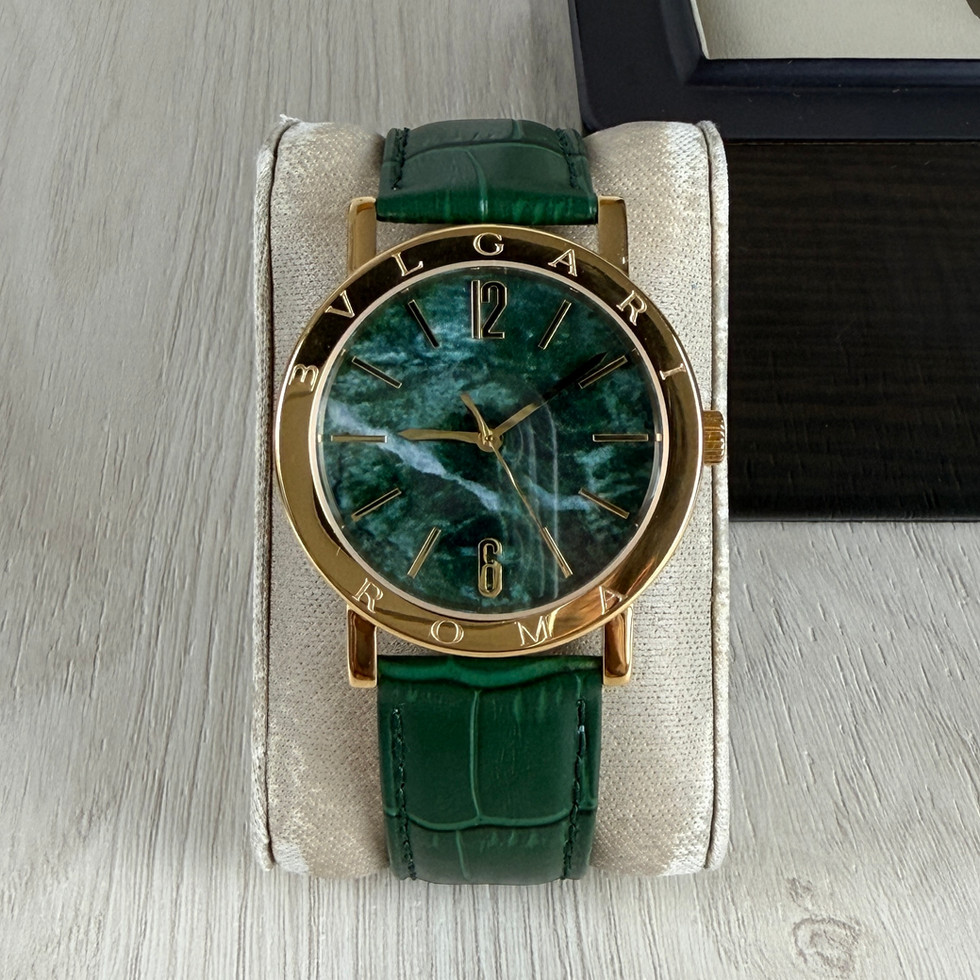 BVLGARI ROMA DOURADO VERDE COURO AUTOMATICO 38MM